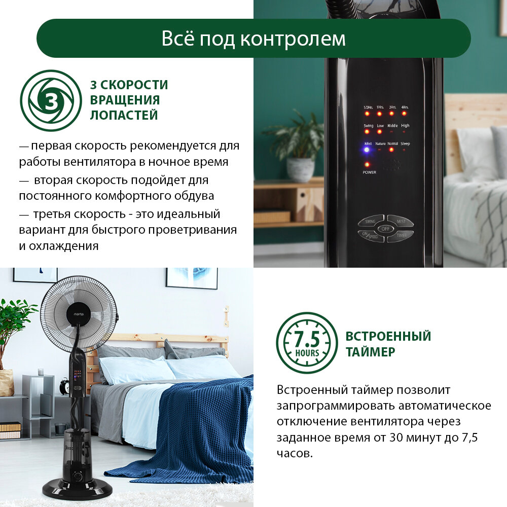 Напольный вентилятор с увлажнителем воздуха и пультом ДУ MARTA MT-FN2550 черный/серый интересное: