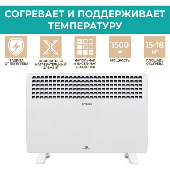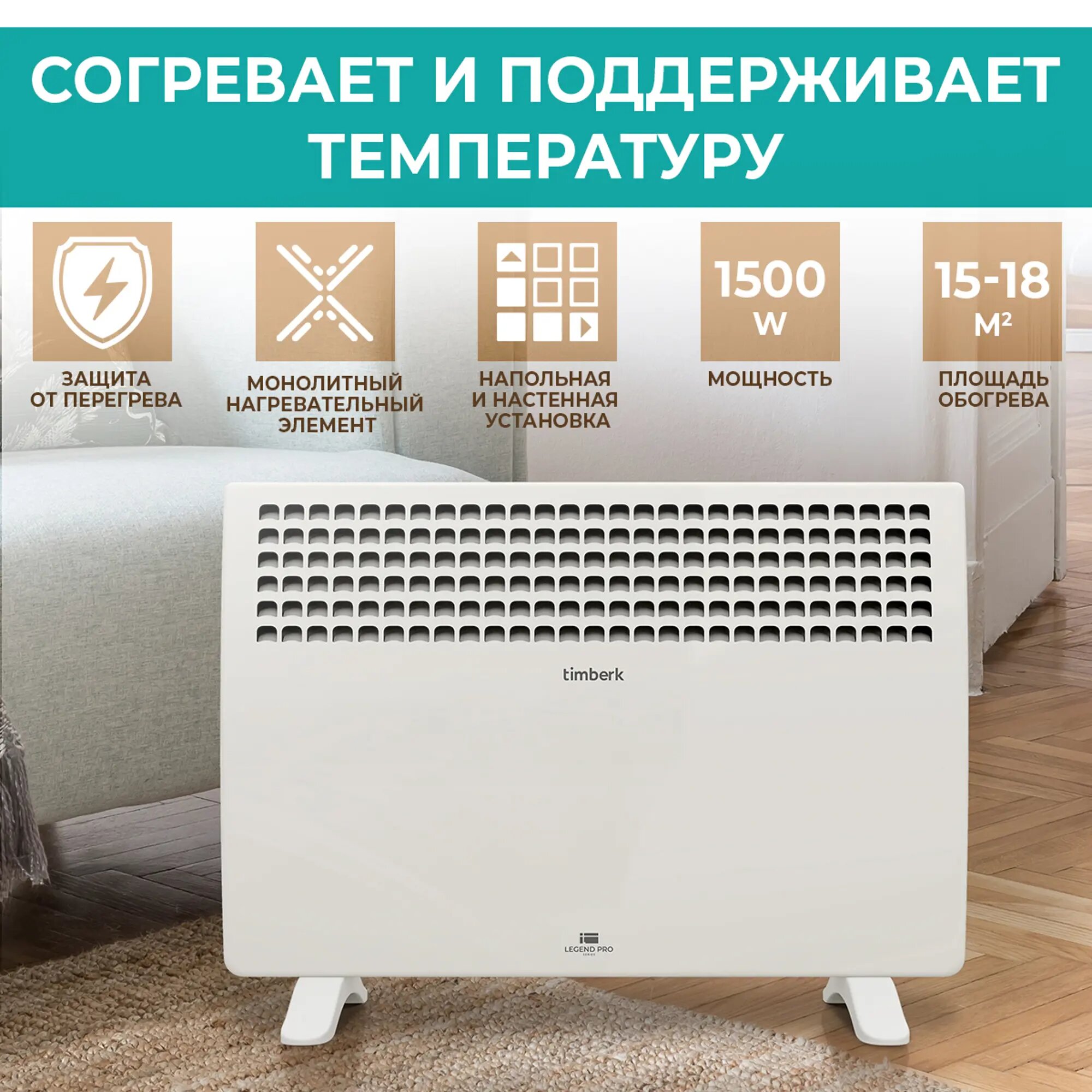 Конвектор Timberk Legend Pro T-EC1500-X1M, настенный/напольный, 15-18м², белый