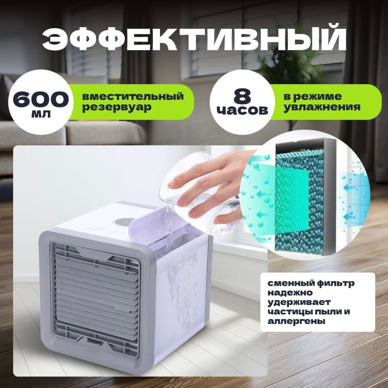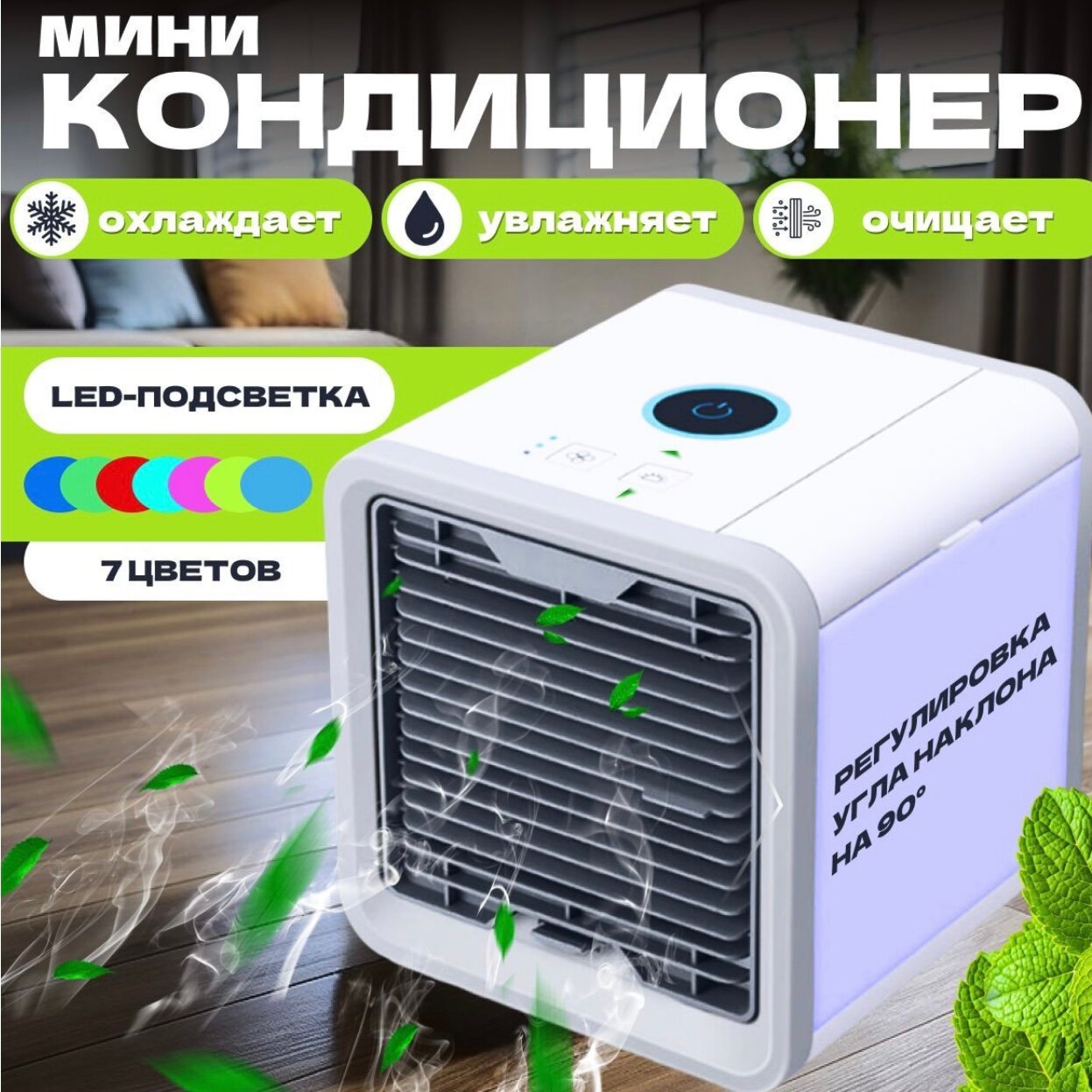 Настольный портативный мини-кондиционер Arctic Air c LED подсветкой интересное: