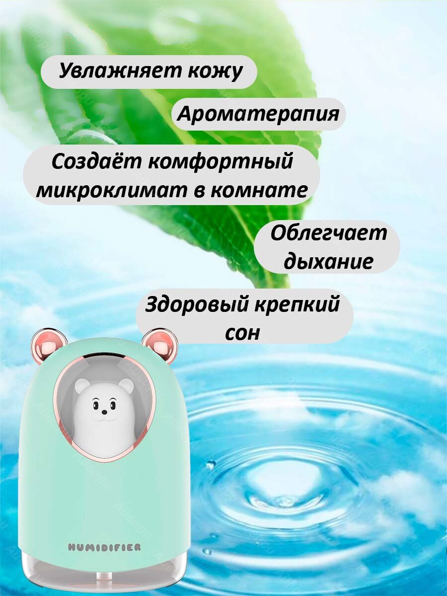 Увлажнитель воздуха мини с подсветкой, ультразвуковой увлажнитель для дома, ночник светильник, зеленый интересное:
