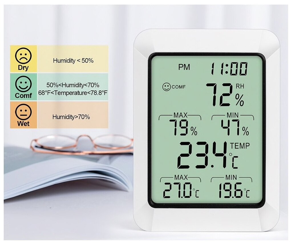 Цифровой термометр гигрометр с часами RZ820 интересное: