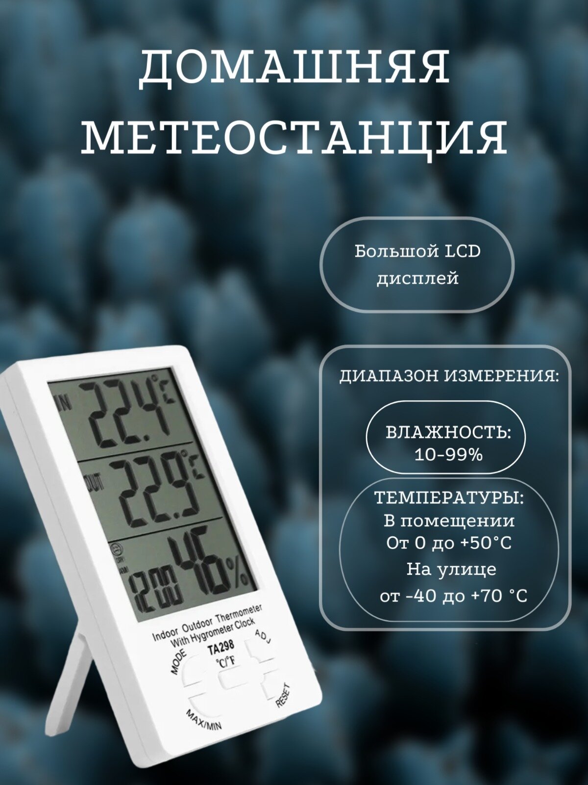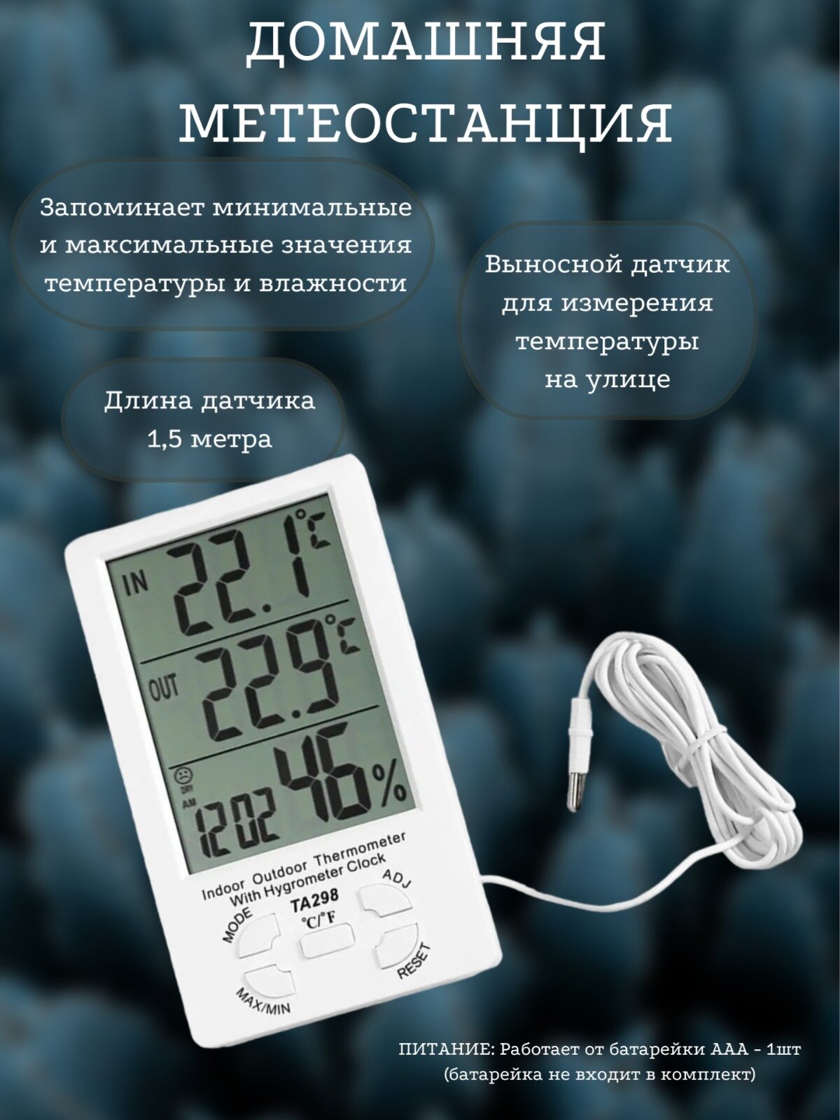 Метеостанция домашняя электронная TA-298, гигрометр термометр комнатный для измерения температуры и влажности воздуха с выносным датчиком интересное: