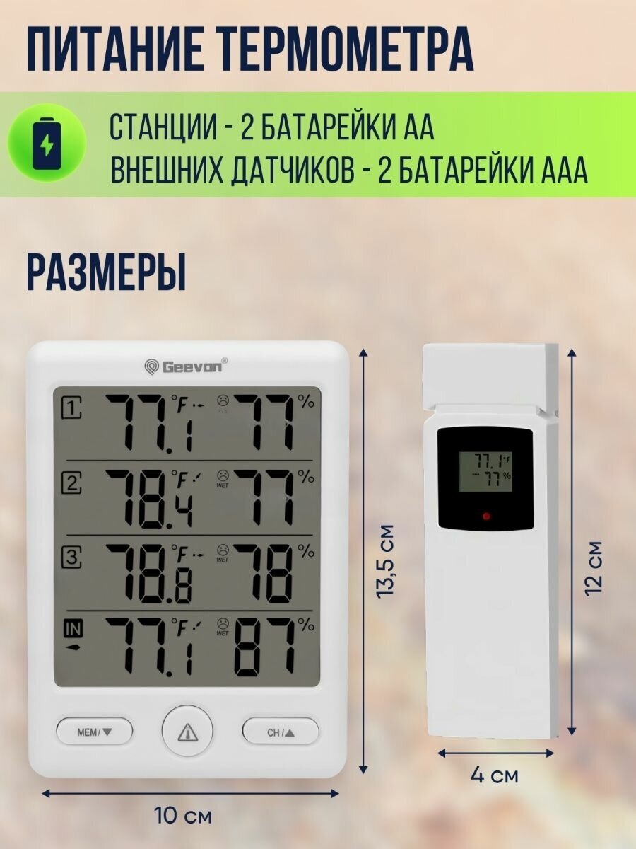 Ниже Вы можете прочитать отзывы на Комнатный термометр-гигрометр с 3-я беспроводными датчиками, ознакомится с подробными характеристиками, посмотреть интересные обзоры и фотографии на Комнатный термометр-гигрометр с 3-я беспроводными датчиками.