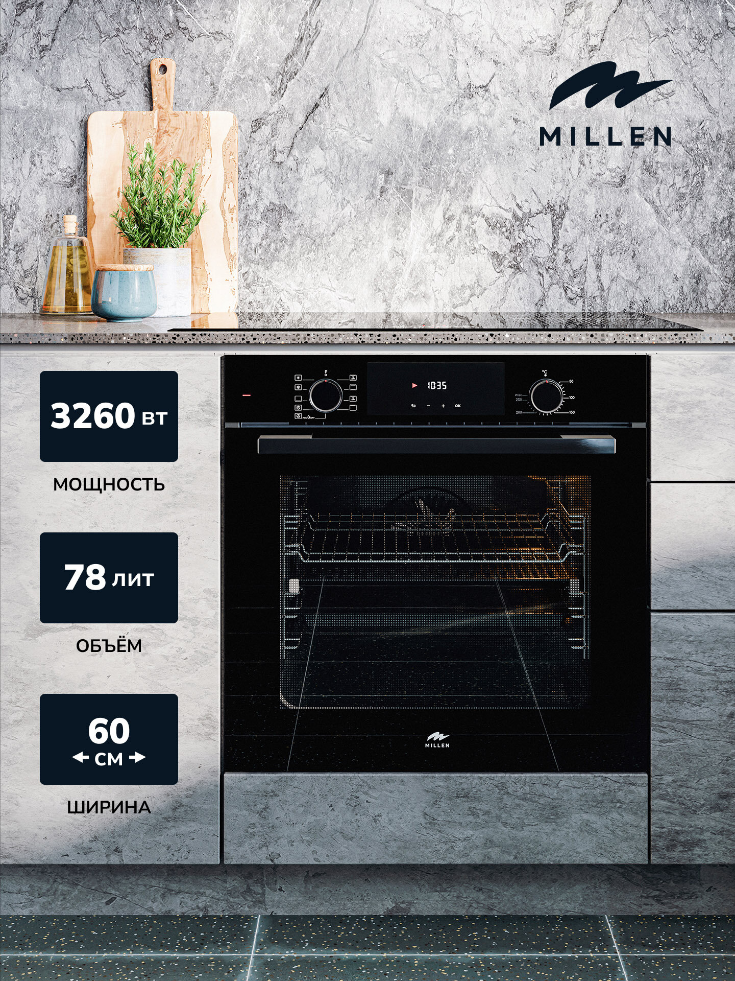 СохранитьДуховой шкаф встраиваемый, электрический MILLEN MEO 6003 BB, черный интересное: