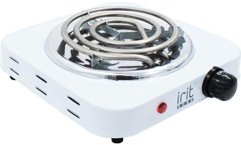Плита электрическая Irit, IR-8005, 1000 Вт, 1 конфорка, спираль, эмаль, механическая, переключатель поворотный, белая