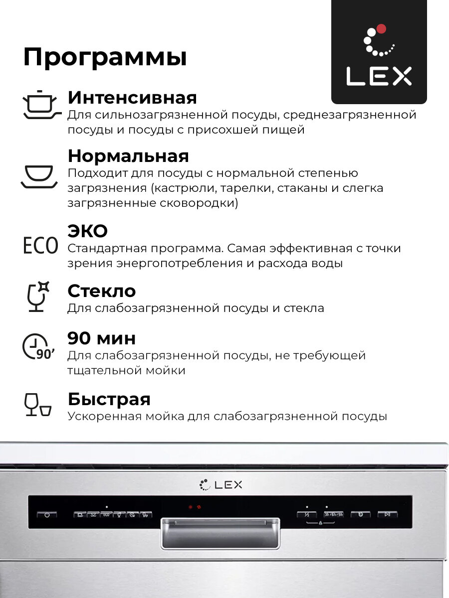 Посудомоечная машина Lex DW 6062 IX интересное: