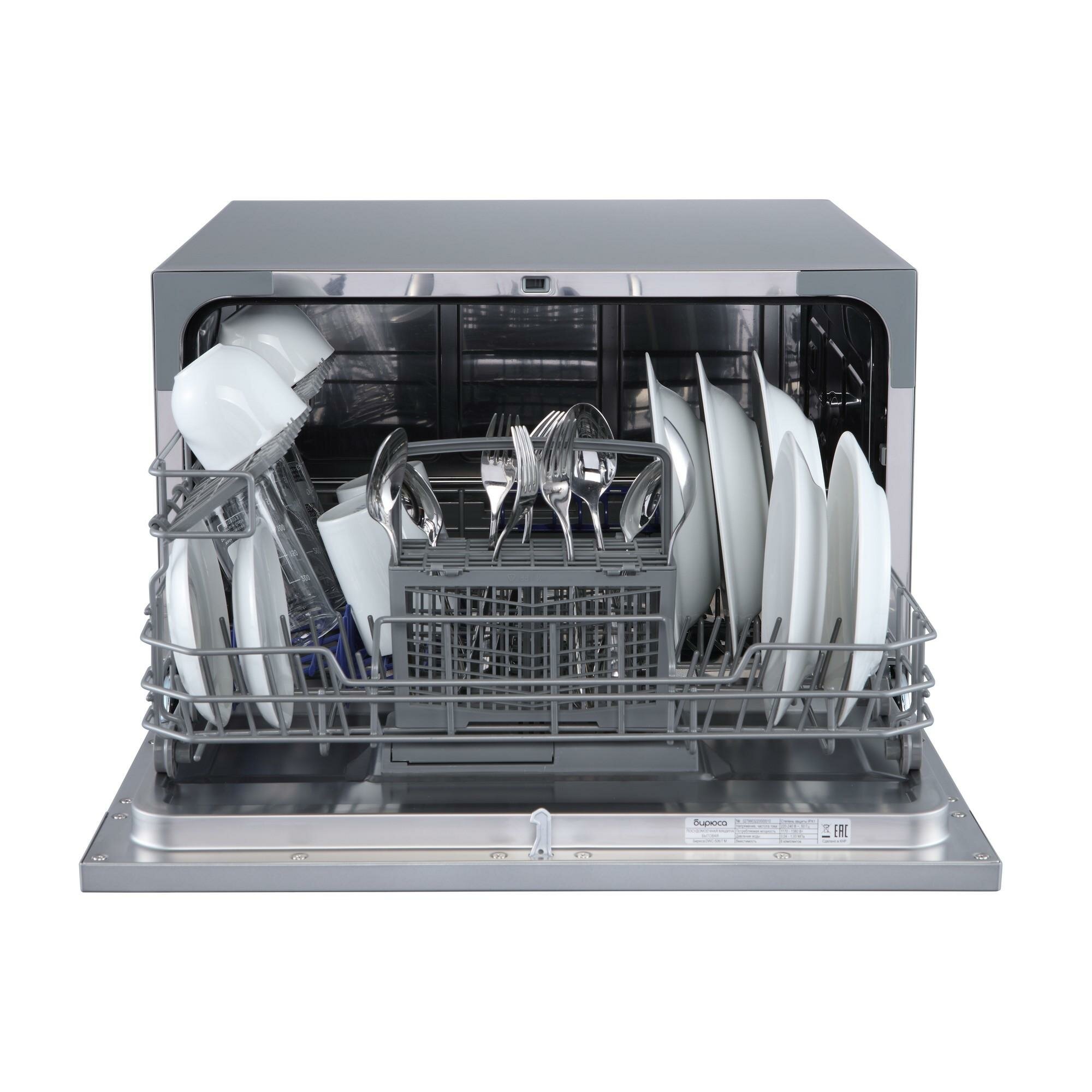 Настольная посудомоечная машина «Бирюса» DWC-506/7 M, 6 комплектов, 7 программ, серая