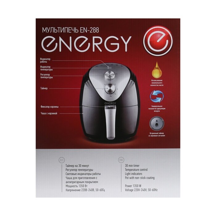 Мультипечь-аэрогриль Energy EN-288, 1350 Вт, чаша 2,6 л