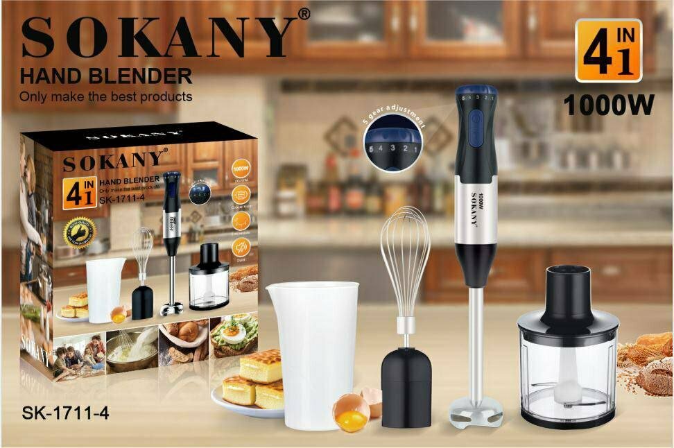 Купить Высокопрочный мощный погружной блендер 4/1 MULTI PURPOSE BLENDER /SOKANY SK-1711-4 /Мощность 1000 Вт,4 насадки/5 режимов скорости
