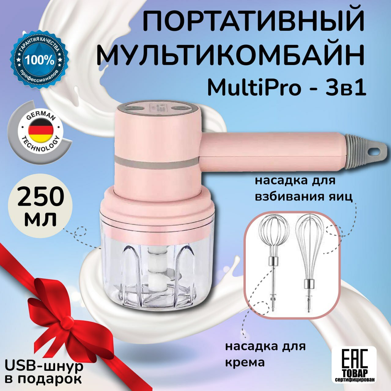 Купить Измельчитель электрический кухонный ,миксер ручной портативный, блендер для смузи