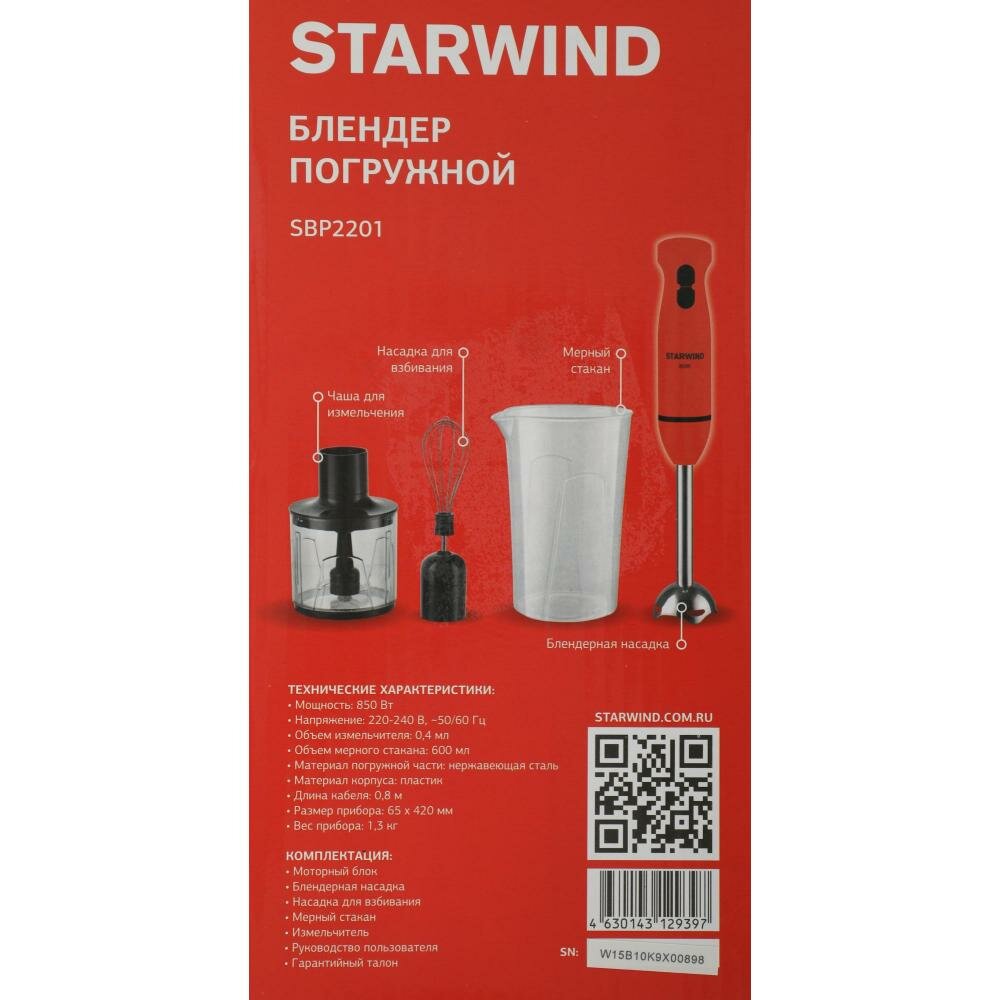 Блендер погружной Starwind SBP2201 850Вт красный/черный интересное: