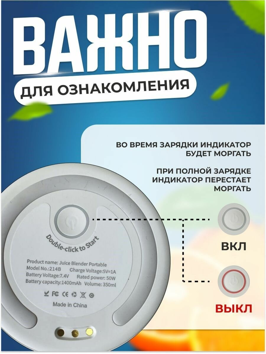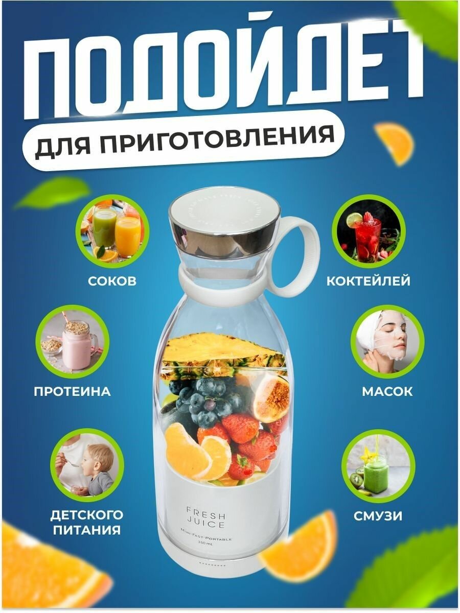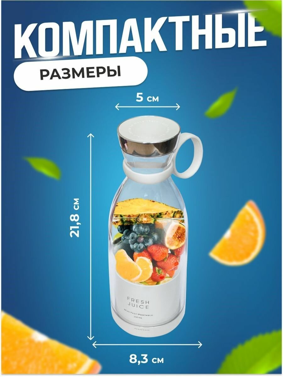Портативный блендер Fresh Juice для приготовление смузи, 350 мл интересное: