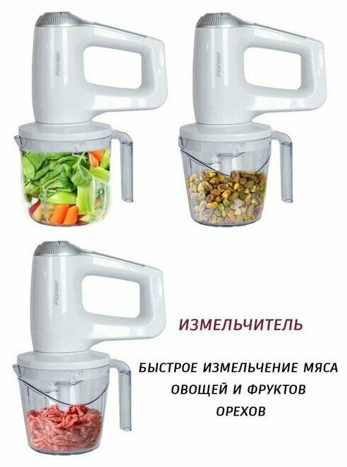 Погружной блендер 3 в 1, 2 скорости, мощность 800 Вт, небесно-голубой