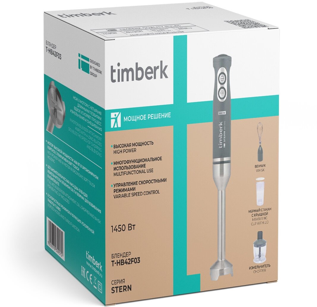 Блендер погружной Timberk T-HB42F01, TURBO режим, 1500 Вт, металлическая погружная часть