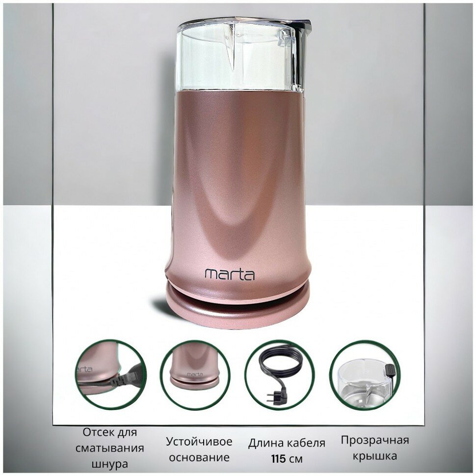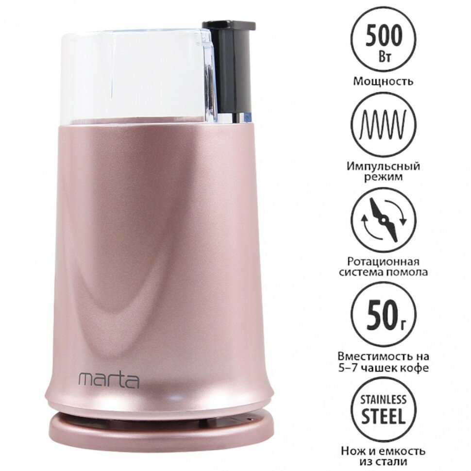 Кофемолка электрическая MARTA MT-2178 Розовый опал 500Вт