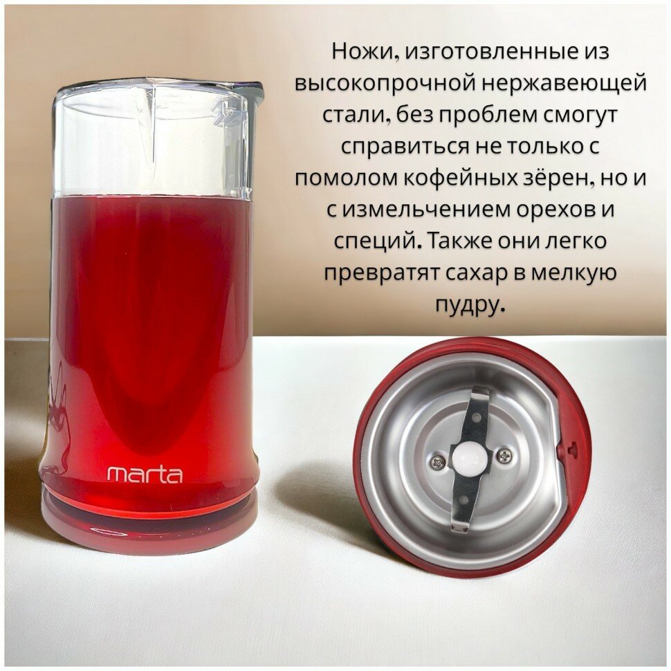 Кофемолка электрическая MARTA MT-2178 Красный рубин 500Вт