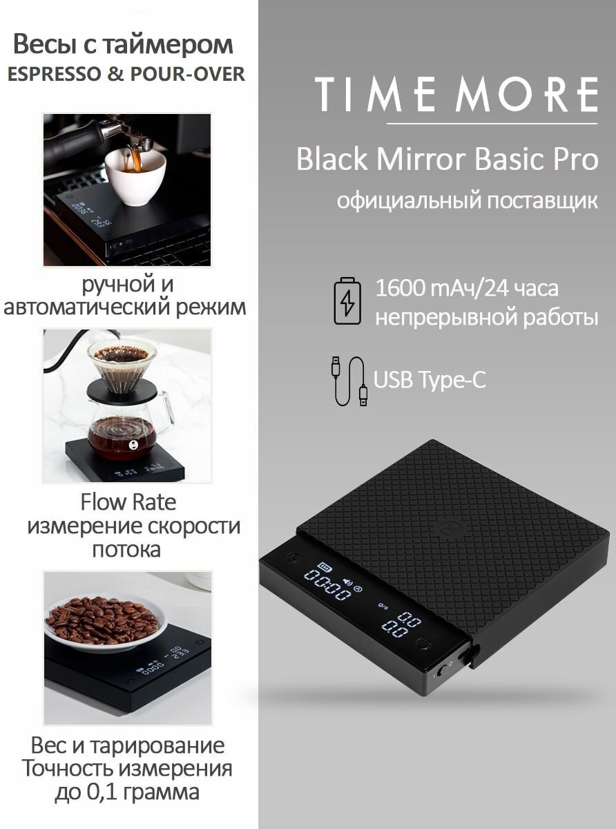 Весы с таймером Timemore Black Mirror Basic Pro, чёрный интересное: