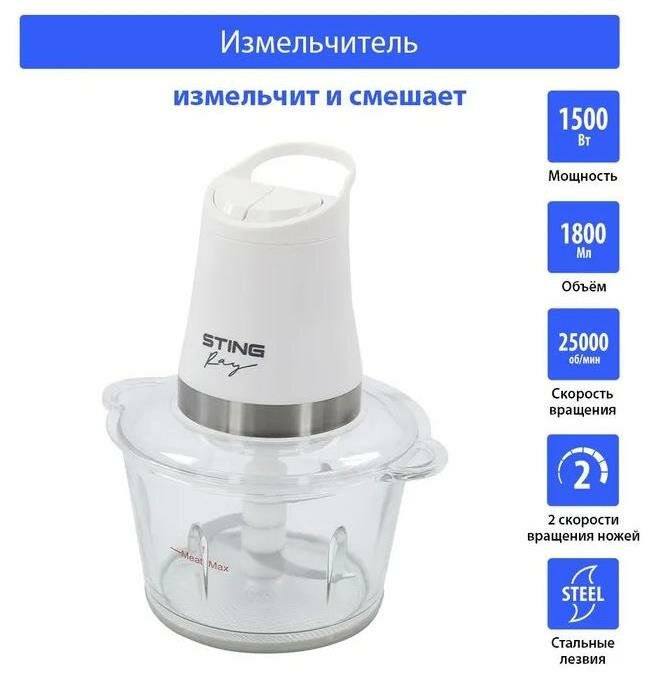 Измельчитель Stingray ST-KP2101A, 1500 Вт, белый жемчуг