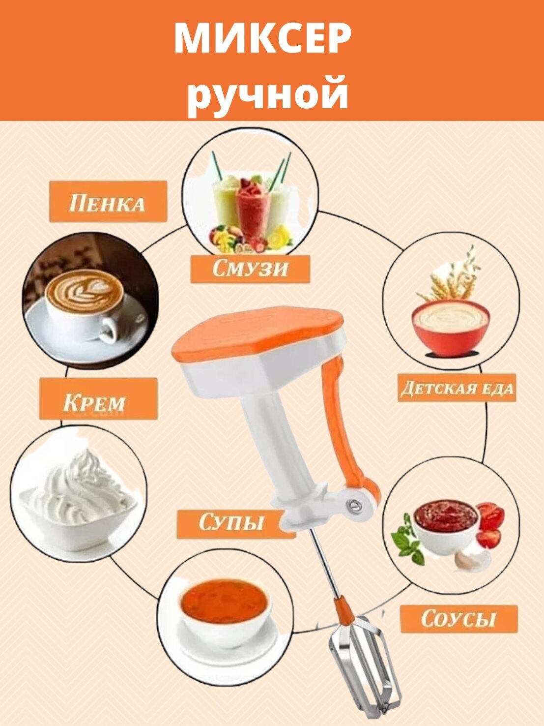 | Дополнительная информация | Главное отличие от обычного миксера в том, что эта модель работает не от сети. Больше не придется искать свободную розетку, чтобы им воспользоваться. Миксер механический также можно брать с собой в поездку, поход, на работу. Конструкция довольно компактная и легкая. Она не займет много места в кухонном шкафу. |
