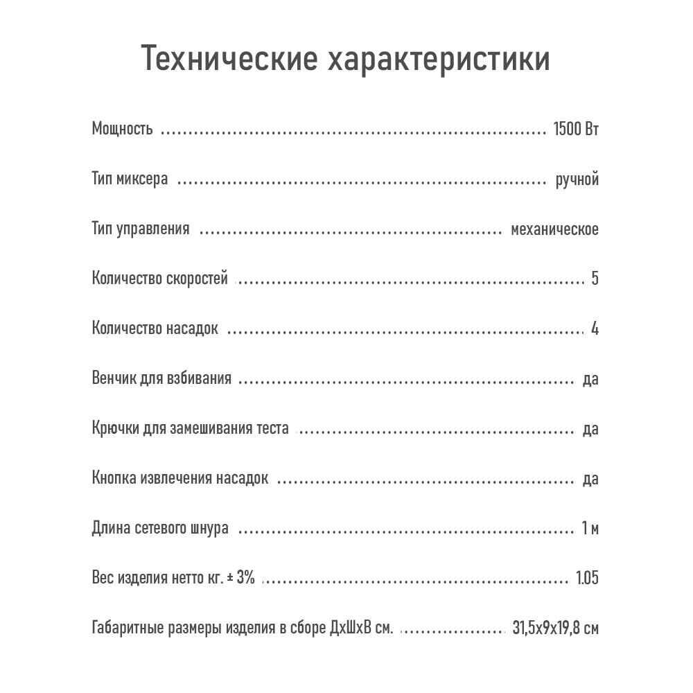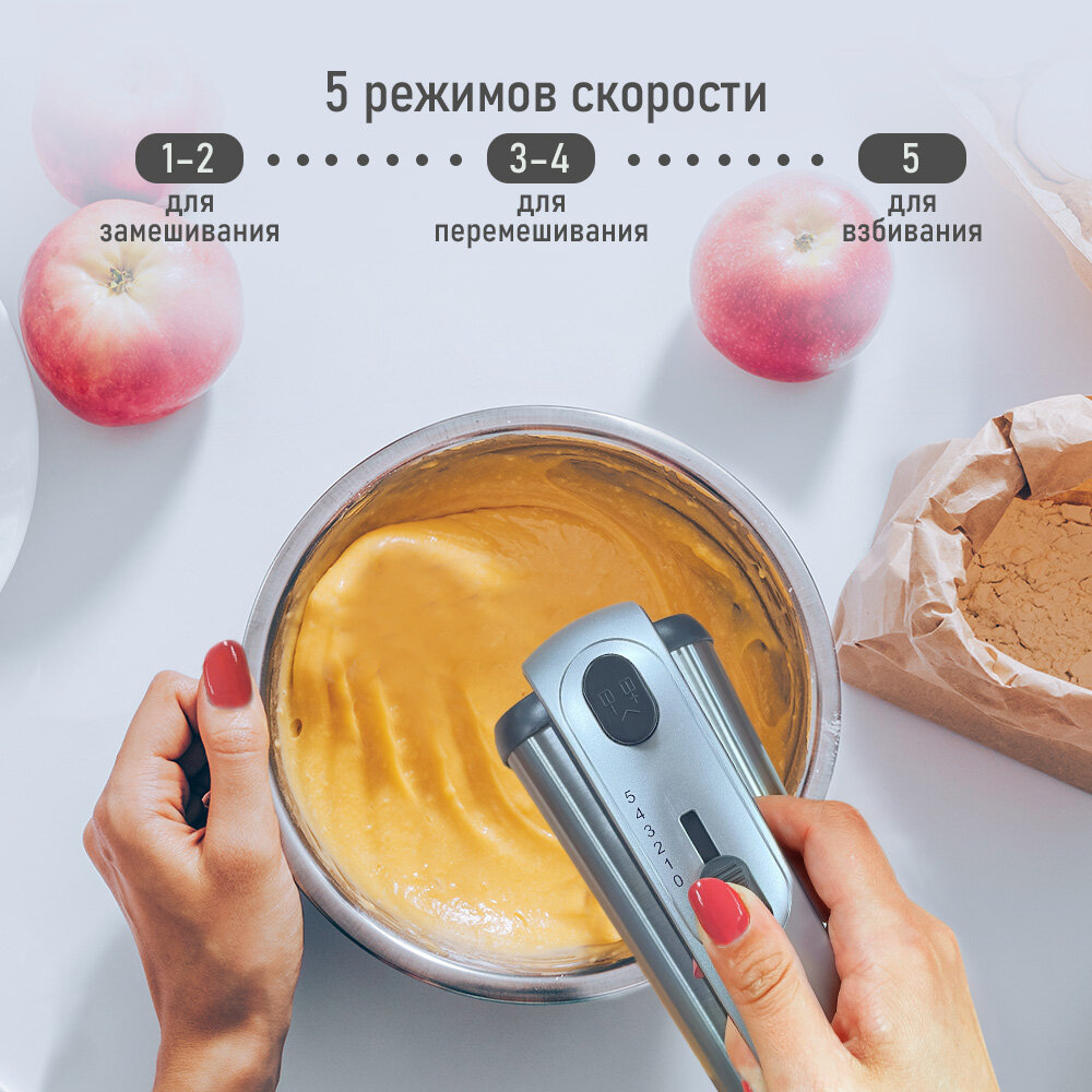 | Отзыв: | Качественный, мощный миксер с 5-ю скоростями. Он с лёгкостью взбивает любые ингредиенты. В комплекте идут насадки для взбивания яиц/жидких компонентов, и насадки для замешивания теста. Очень довольна покупкой. |