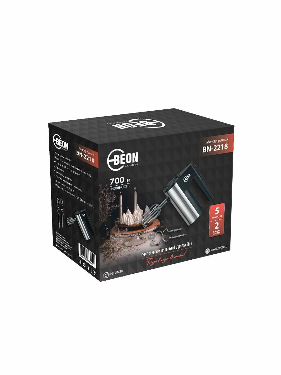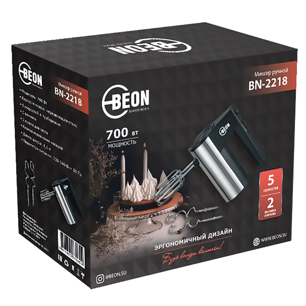 Миксер BEON BN-2218 700 Вт, черный/хром интересное: