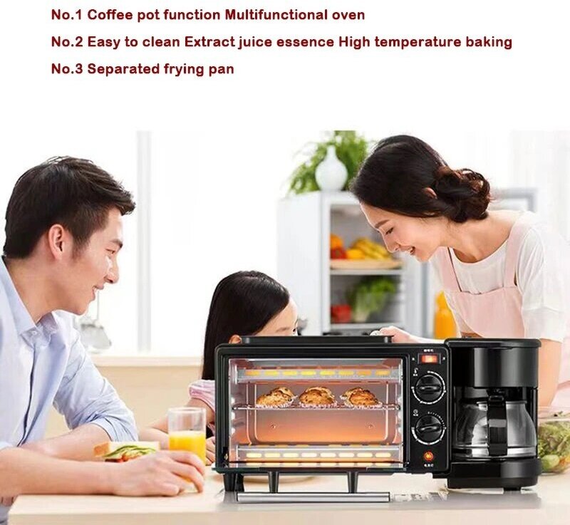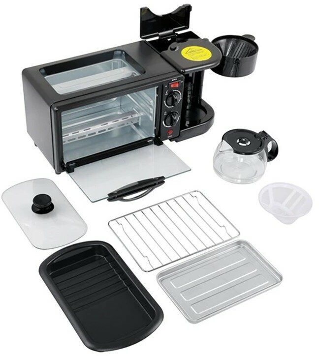 Многофункциональная электрическая духовка 3в1 / 1250Вт/ Мини печь/ Чайник/ Кофемашина/ Гриль/ Сковорода/ Цвет: Черный SK145 интересное: