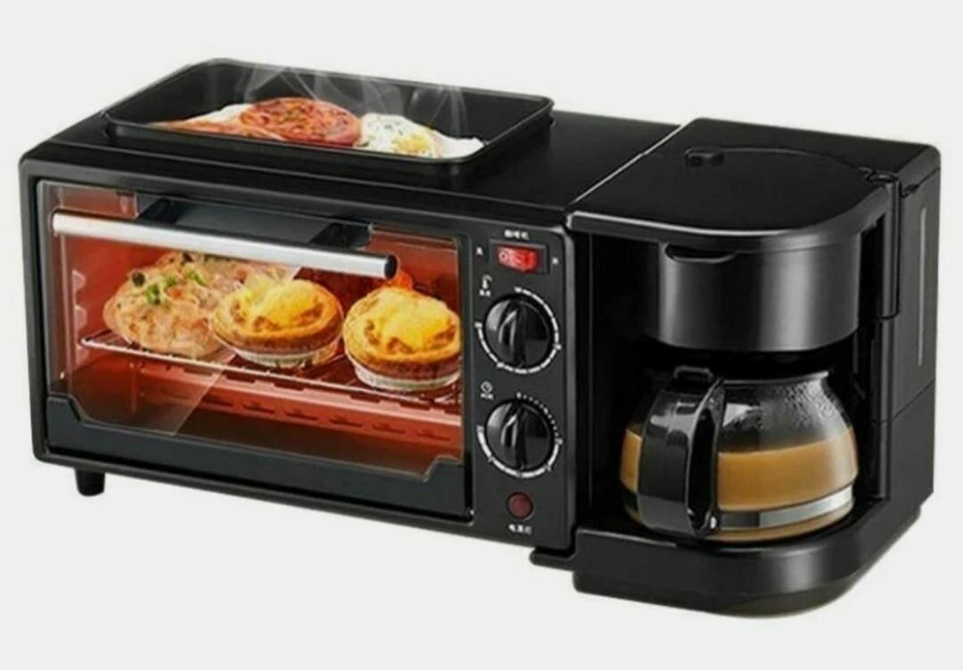 Мини-печь Три в одном печь/машина для завтрака/кофемашина, черный интересное: