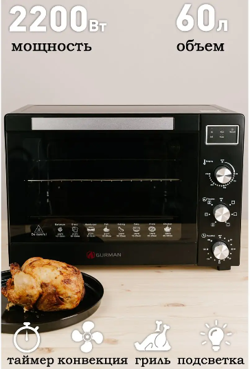 Мини-печь GURMAN GR-HH600, 60л, 2200Вт. интересное:
