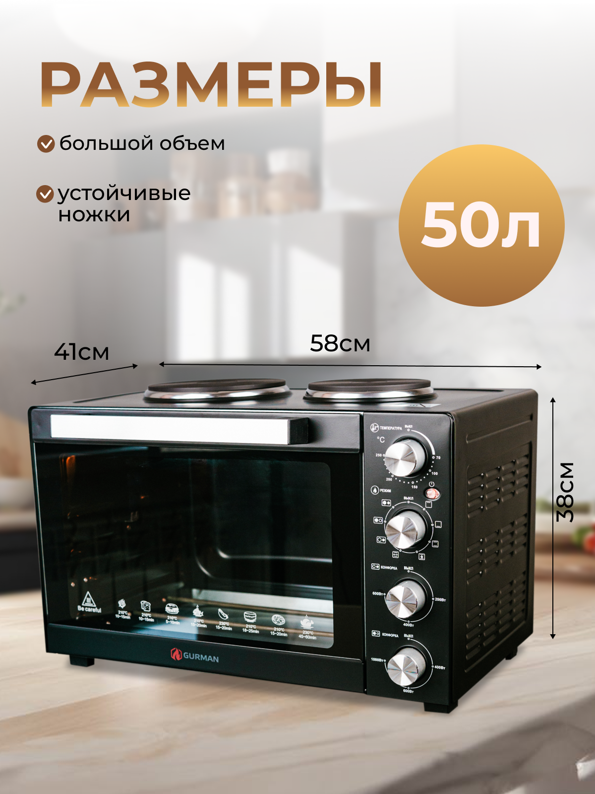 Мини-печь GURMAN GR-HH500-2H, 50л, 2000Вт. интересное: