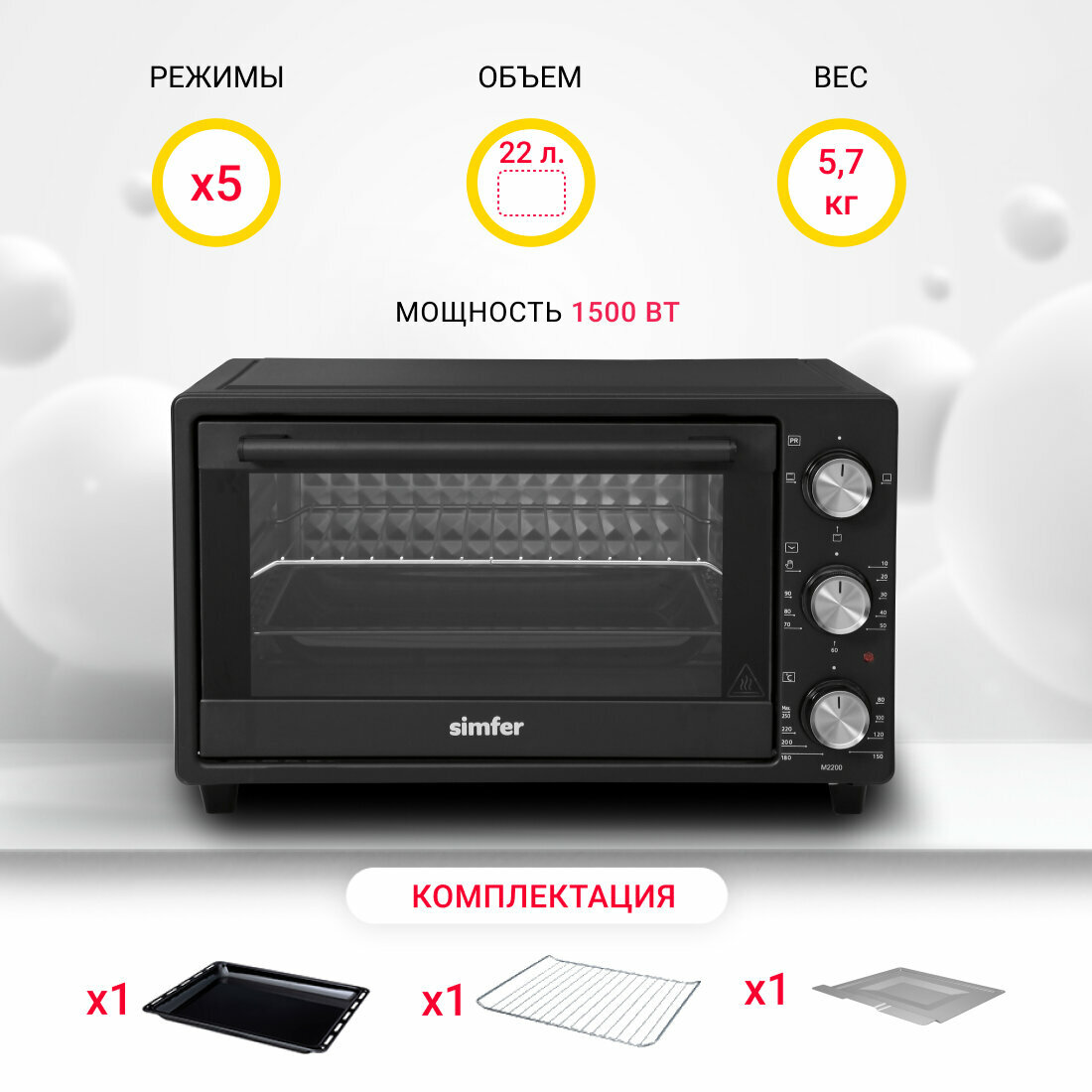 Купить Мини-печь Simfer M2200, 3 режима работы, верхний и нижний нагрев