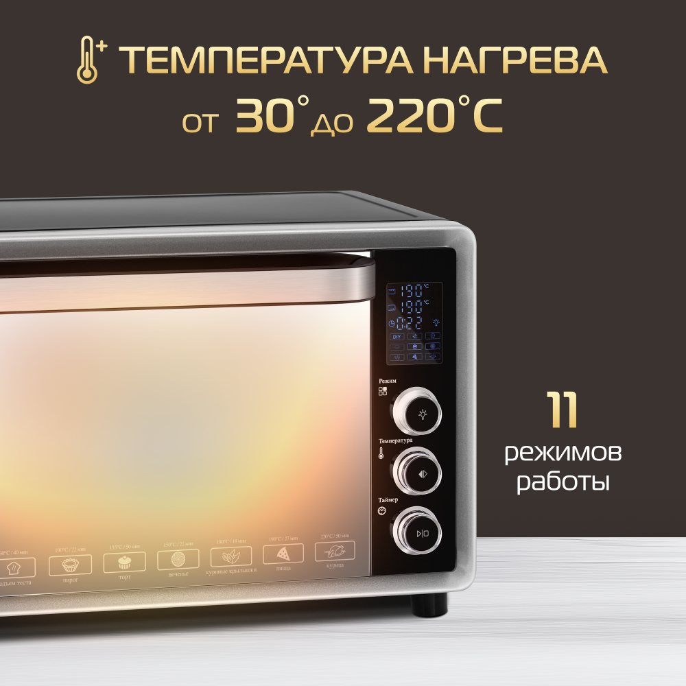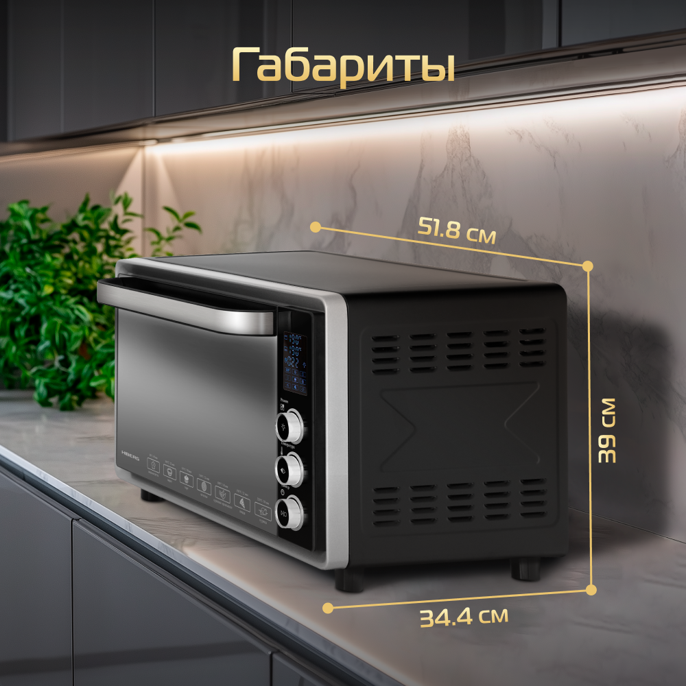 Мини-печь HIBERG PR 400 DARK MOON, 1600 Вт, 40 л, конвекция, гриль, таймер , 11 режимов, черный