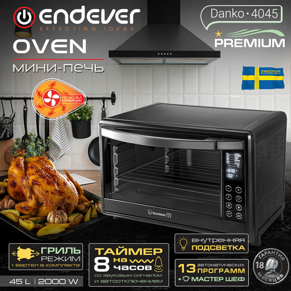 Мини-печь Endever Danko 4045 (90337) черный интересное:
