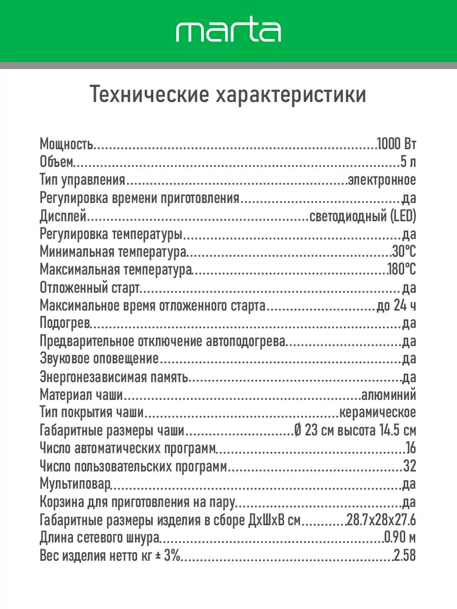Мультиварка MARTA MT-MC4336A белый интересное: