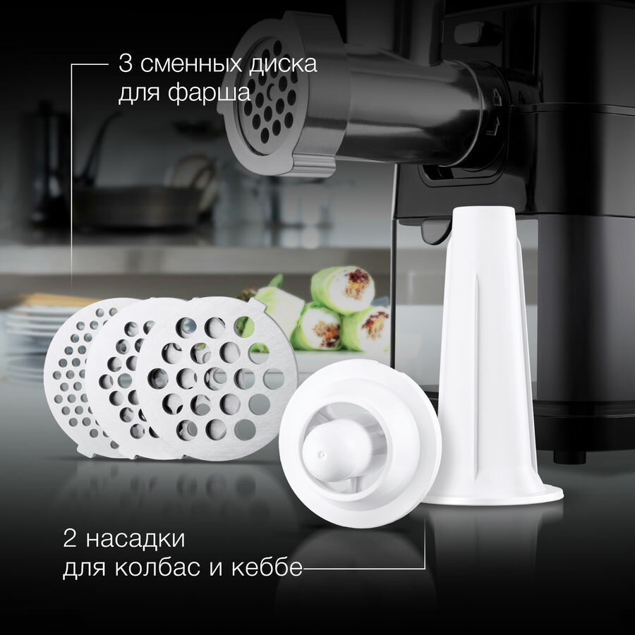 | Насадки | диск для фарша / насадка для кеббе / насадка для приготовления колбас |