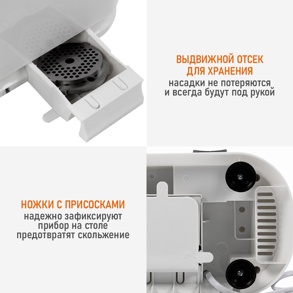 | Насадки | диск для фарша / насадка для приготовления колбас / соковыжималка |