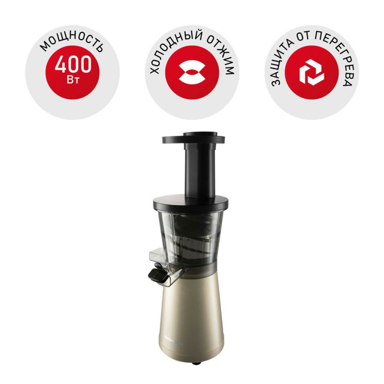 Шнековая соковыжималка, соковыжималка REDMOND, 400 Вт, стакан, объем 0.6 л, шампань интересное: