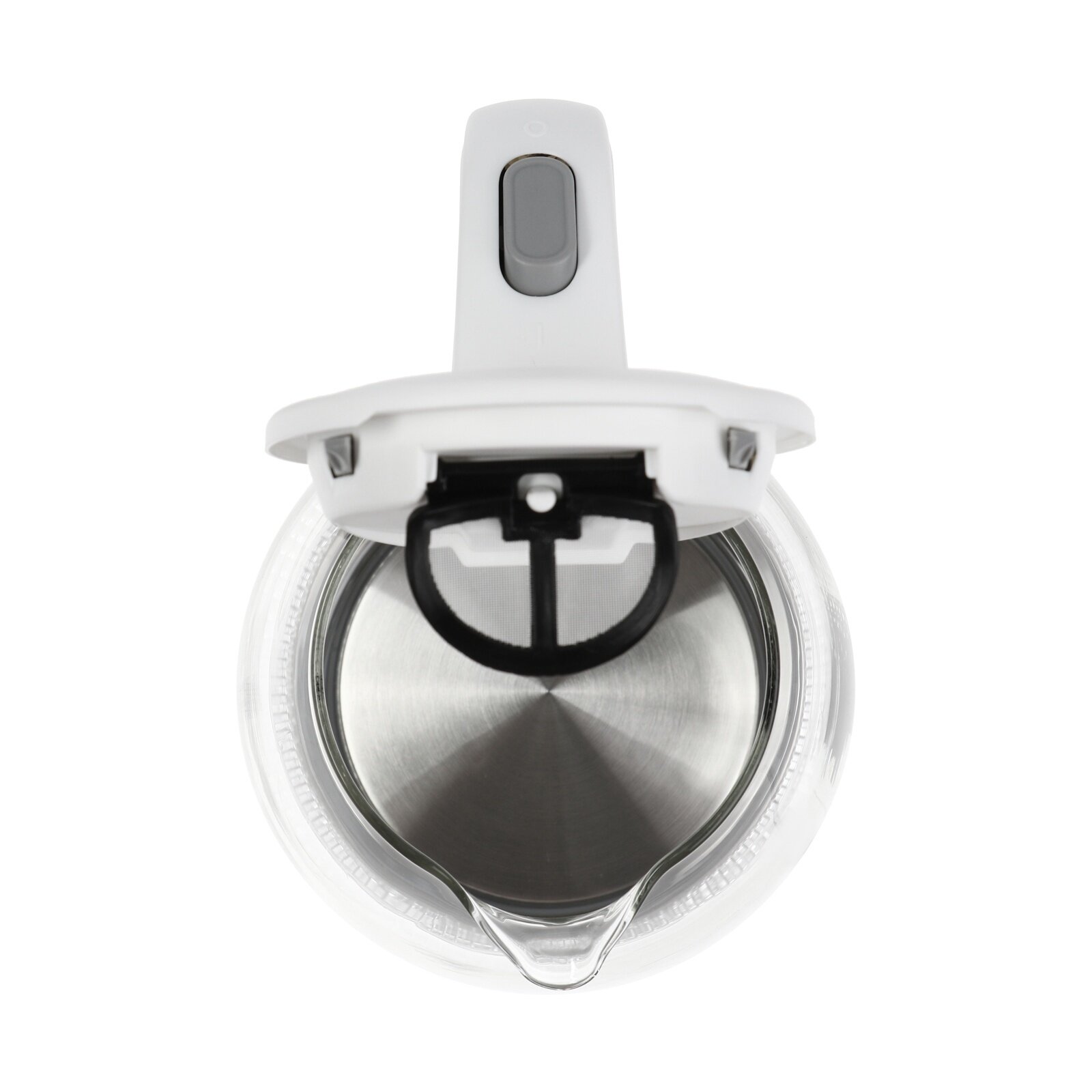 Крышку чайника нужно открывать рывком вверх, кнопки открытия нет. |
