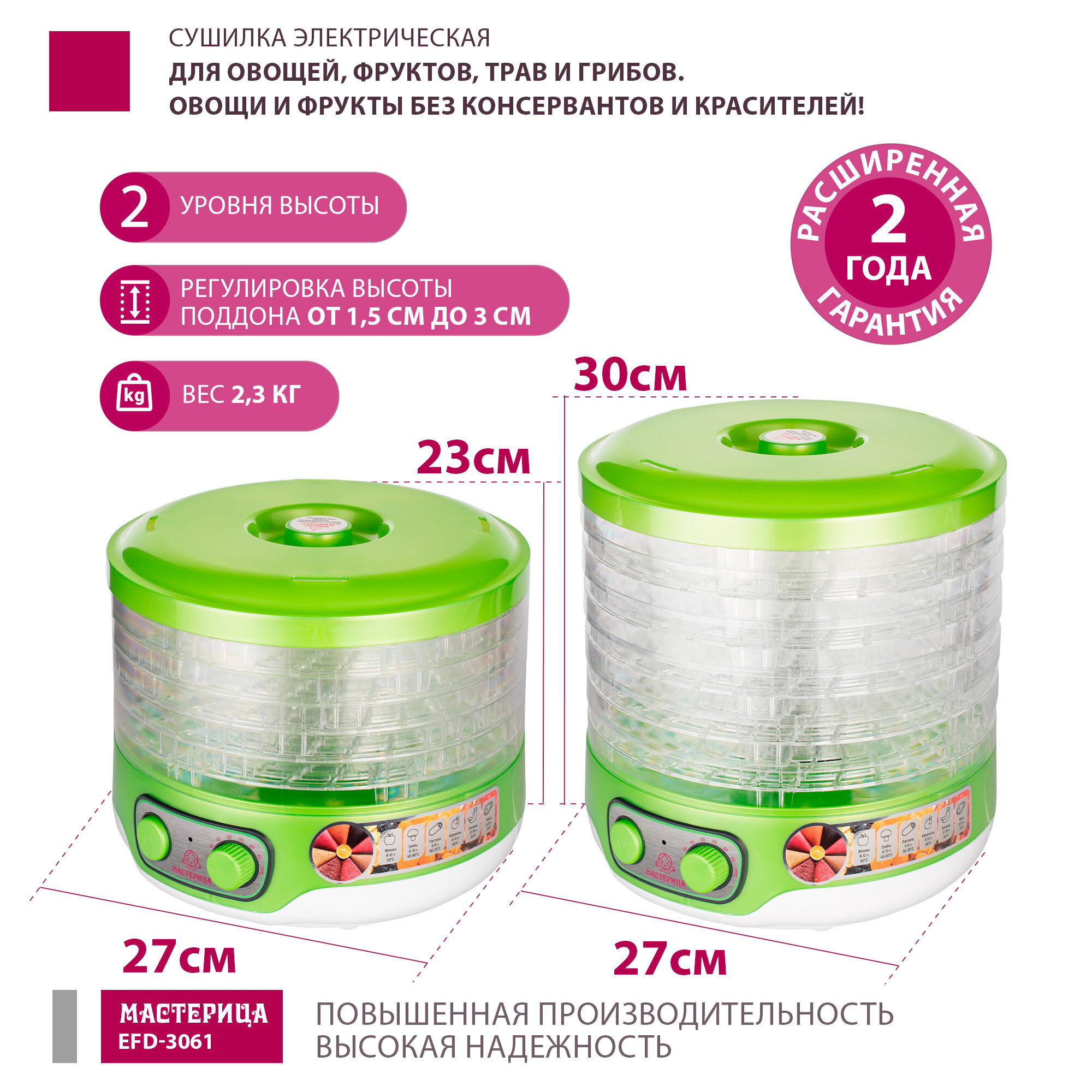 Сушилка для овощей и фруктов мастерица EFD-3061, зеленый перламутр