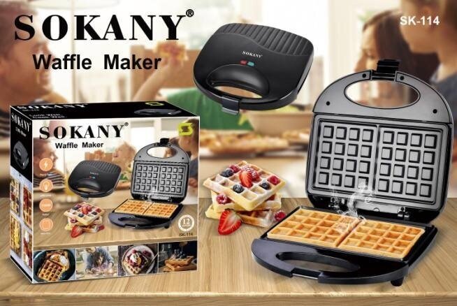 Купить Электрическая вафельница /SK-114/750 ВТ/Stainless steel/бельгийские вафли/порция из 2 шт/черный