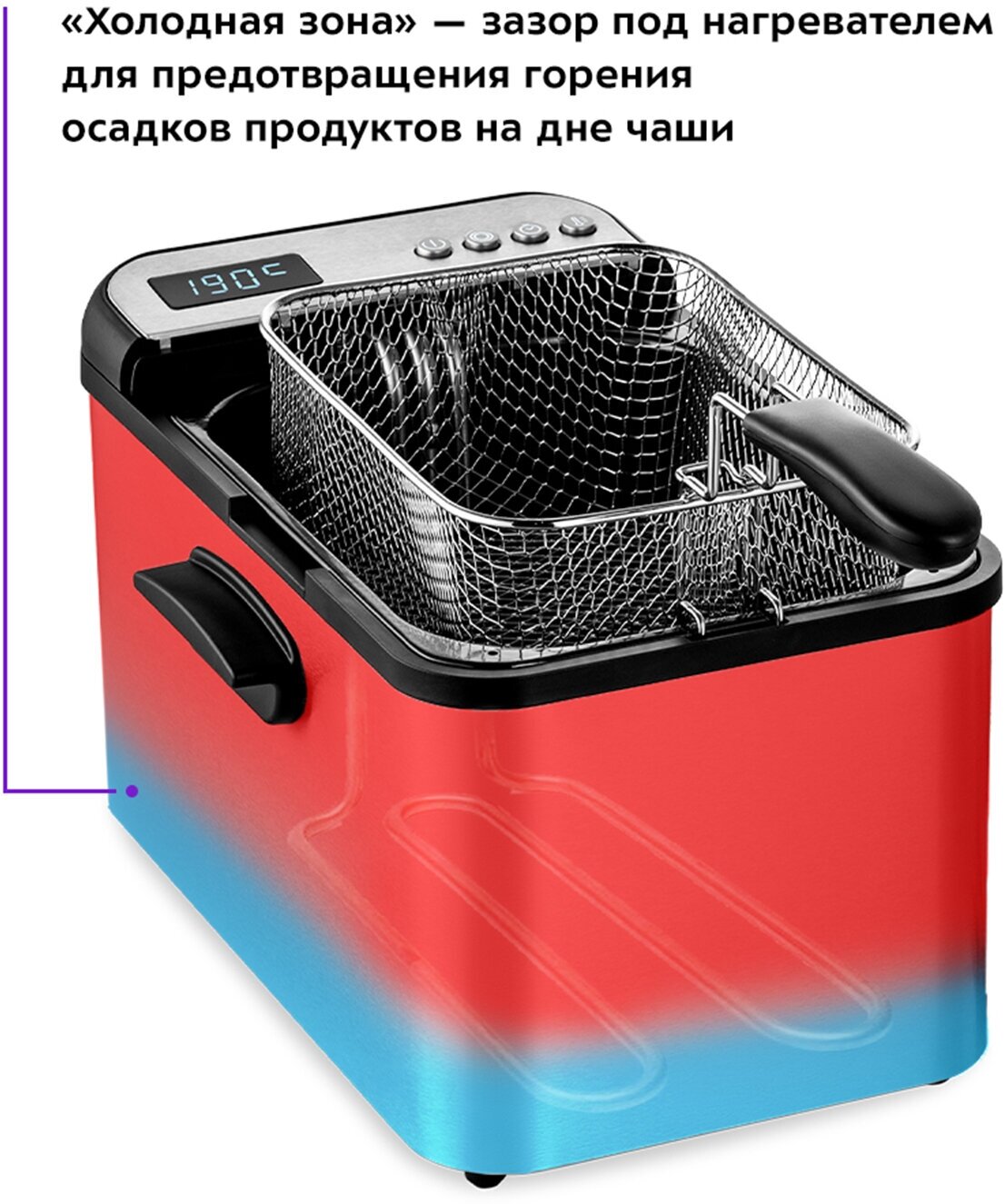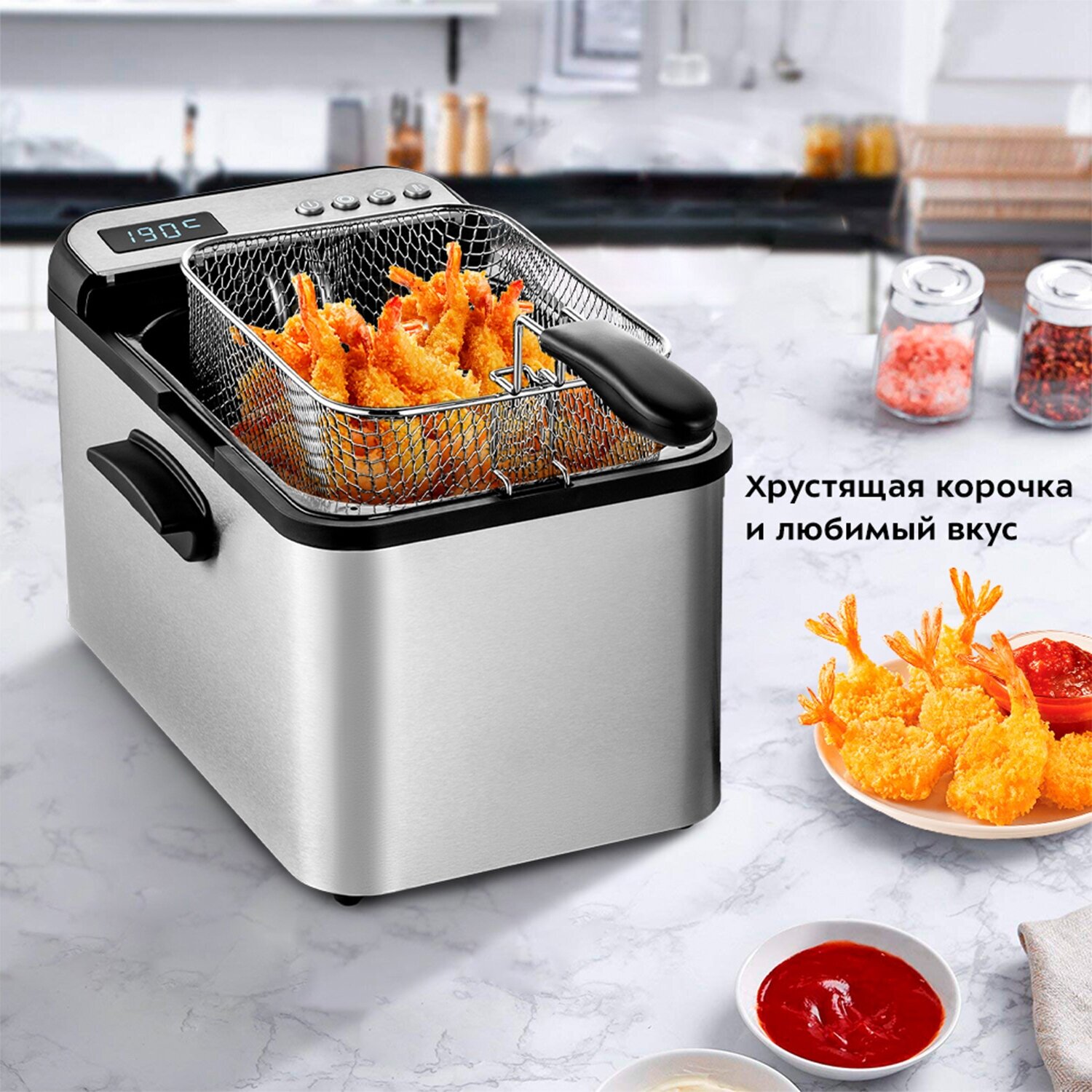 Фритюрница электрическая, 1.5 л, 6 режимов температуры, съемная чаша, серебристый
