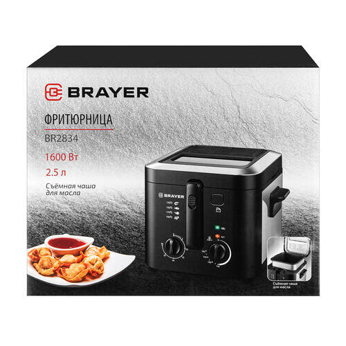 Фритюрница BRAYER BR2834, 2,5 л со съемной корзиной, 1800 Вт, цвет черный/серебристый