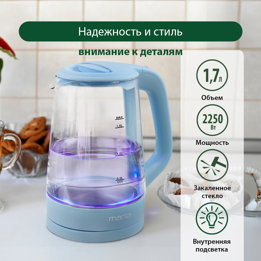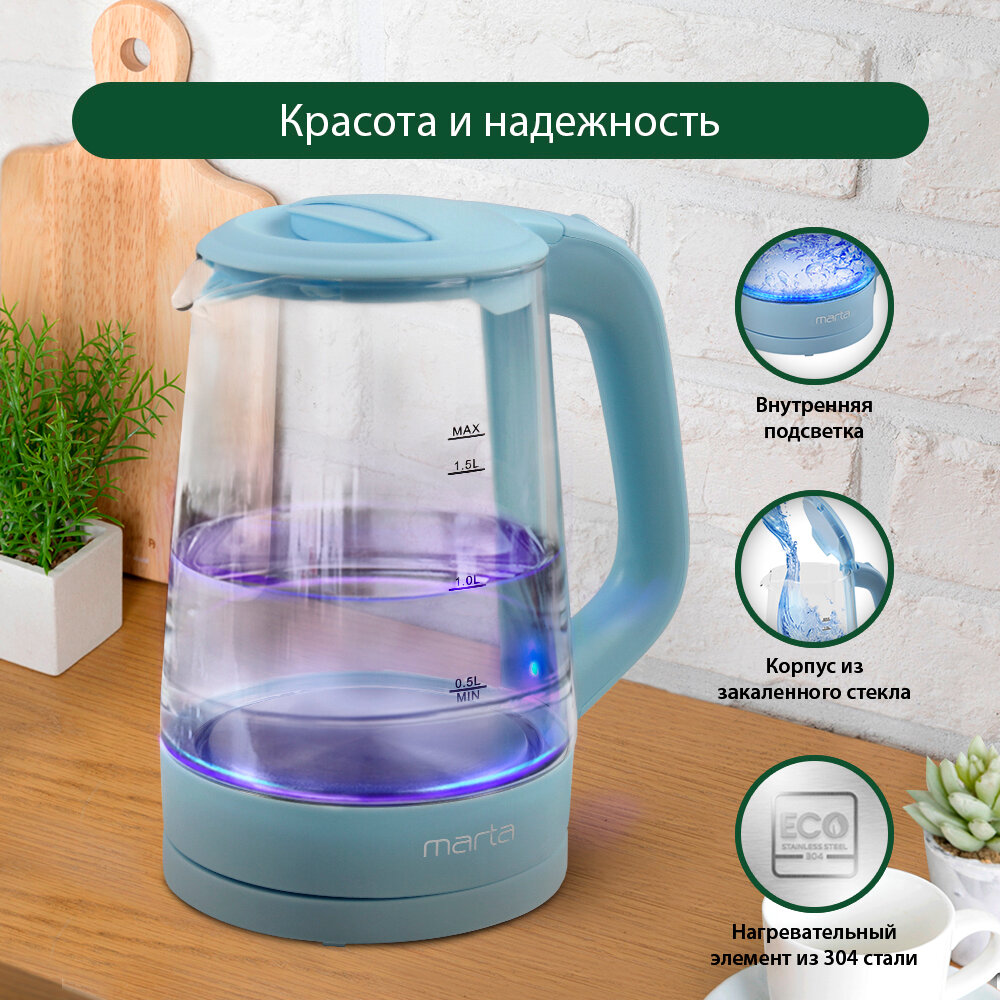 Купить Электрический чайник MARTA MT-4573 голубой аквамарин