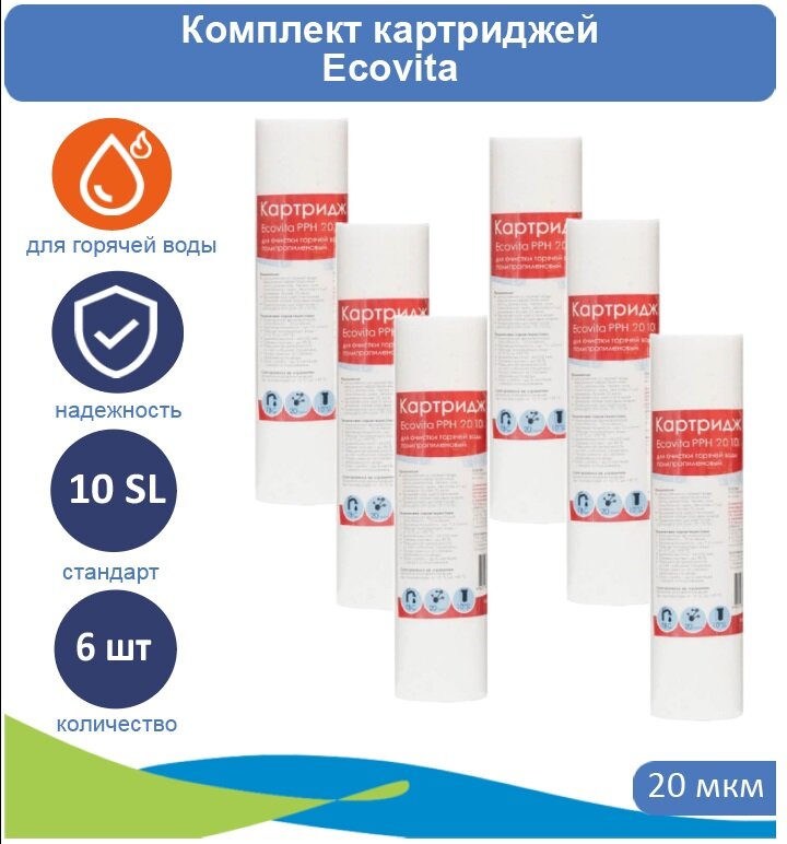 Купить Картридж полипропиленовый Ecovita PPH 20 10SL для горячей воды - 6 шт.