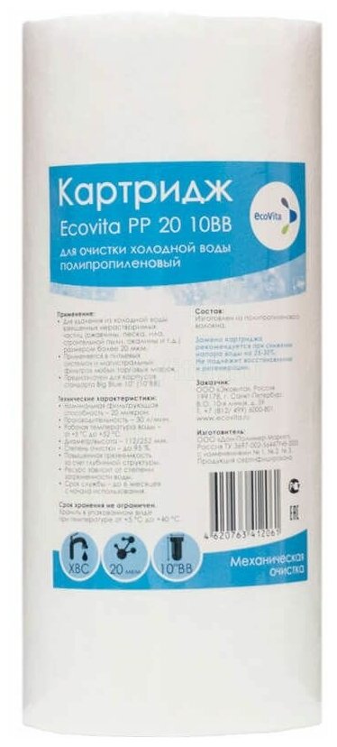 Картридж полипропиленовый Ecovita PP 20 10BB для холодной воды