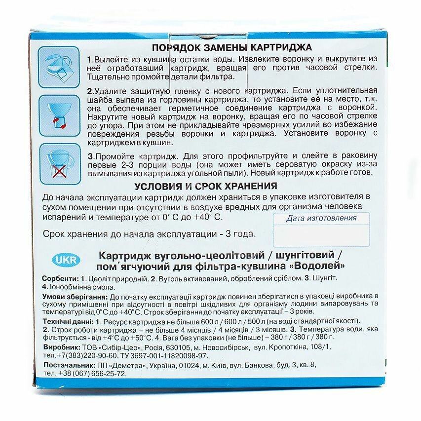 Картридж для фильтра - кувшина "Водолей" шунгитовый интересное: