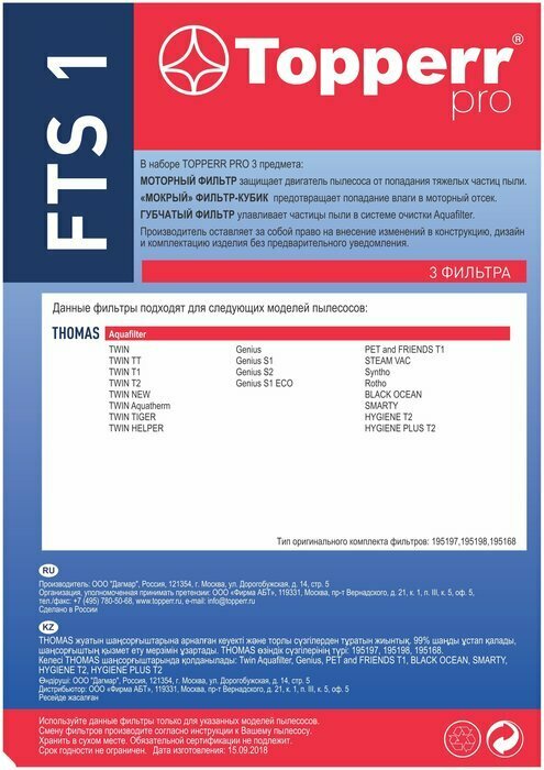Topperr Набор губчатых фильтров для пылесосов THOMAS Aquafilter, FTS 1 интересное: