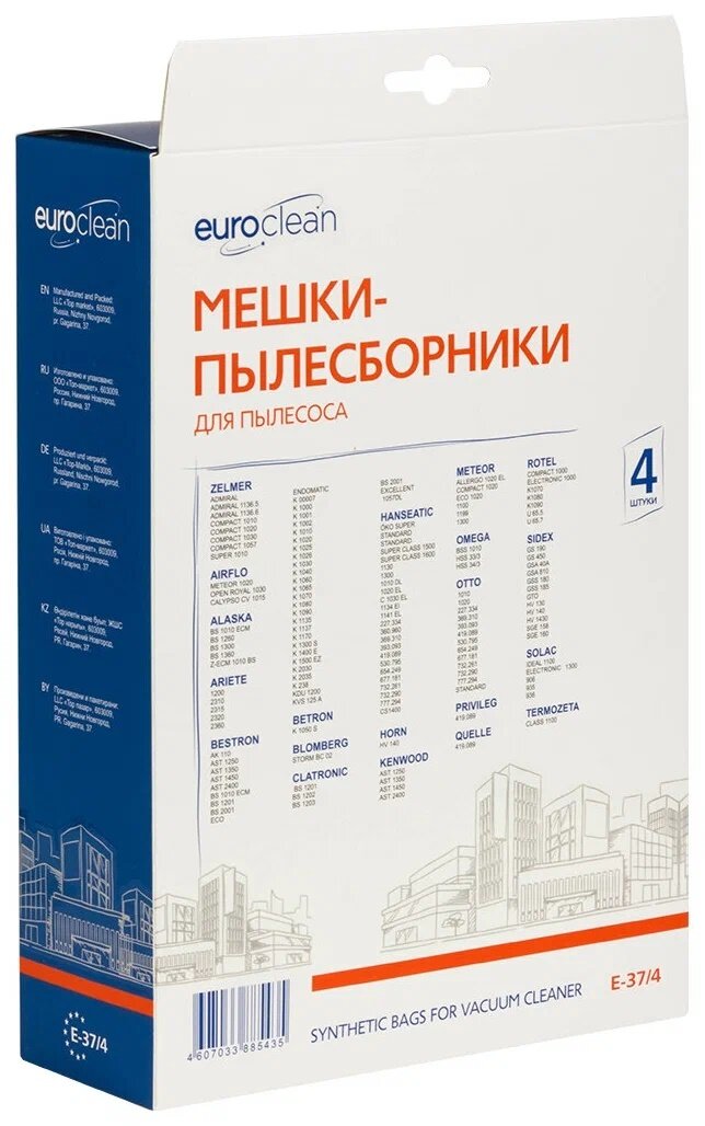 Мешки-пылесборники Euroclean E-37/4 синтетические 4 шт для METEOR, ROTEL, ZELMER и др. интересное: