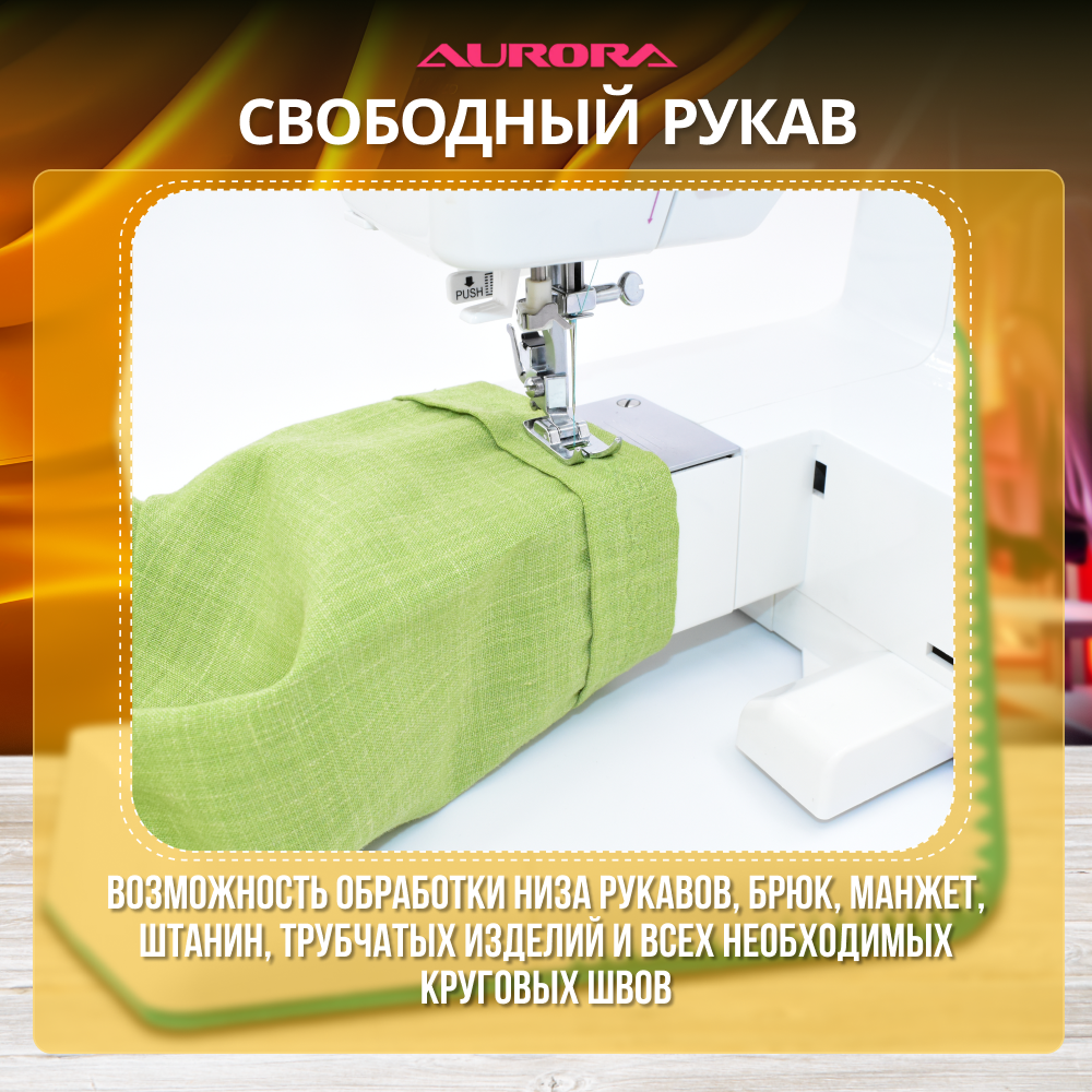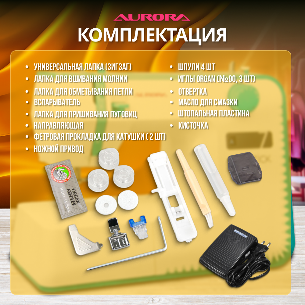 Швейная машина AURORA Praktick 7, металлическая станина, 23 швейные операции, с нитевдевателем. Мощность 70Вт.