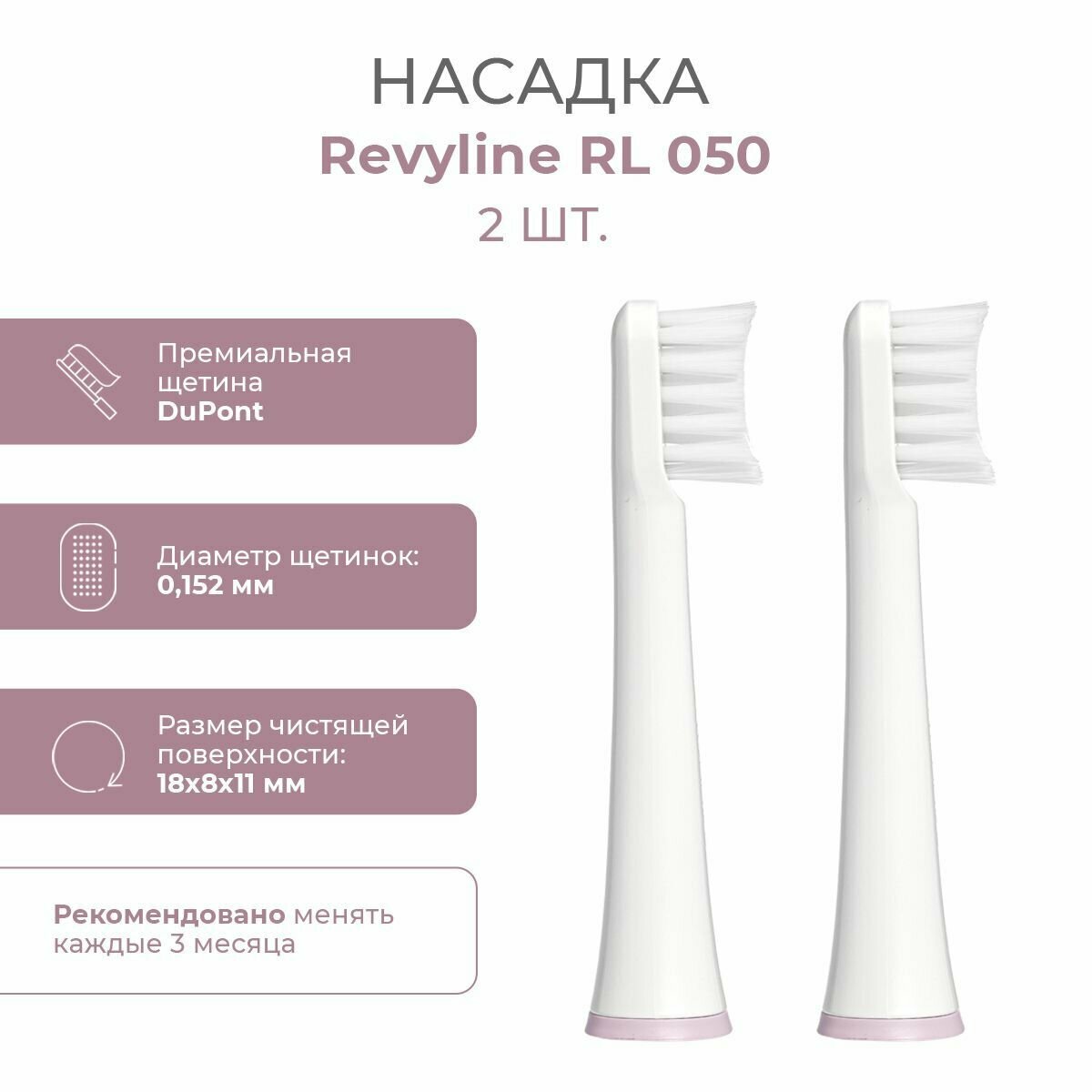 Сменные насадки для электрической зубной звуковой щетки Revyline RL 050,розовые,2шт, Ревилайн