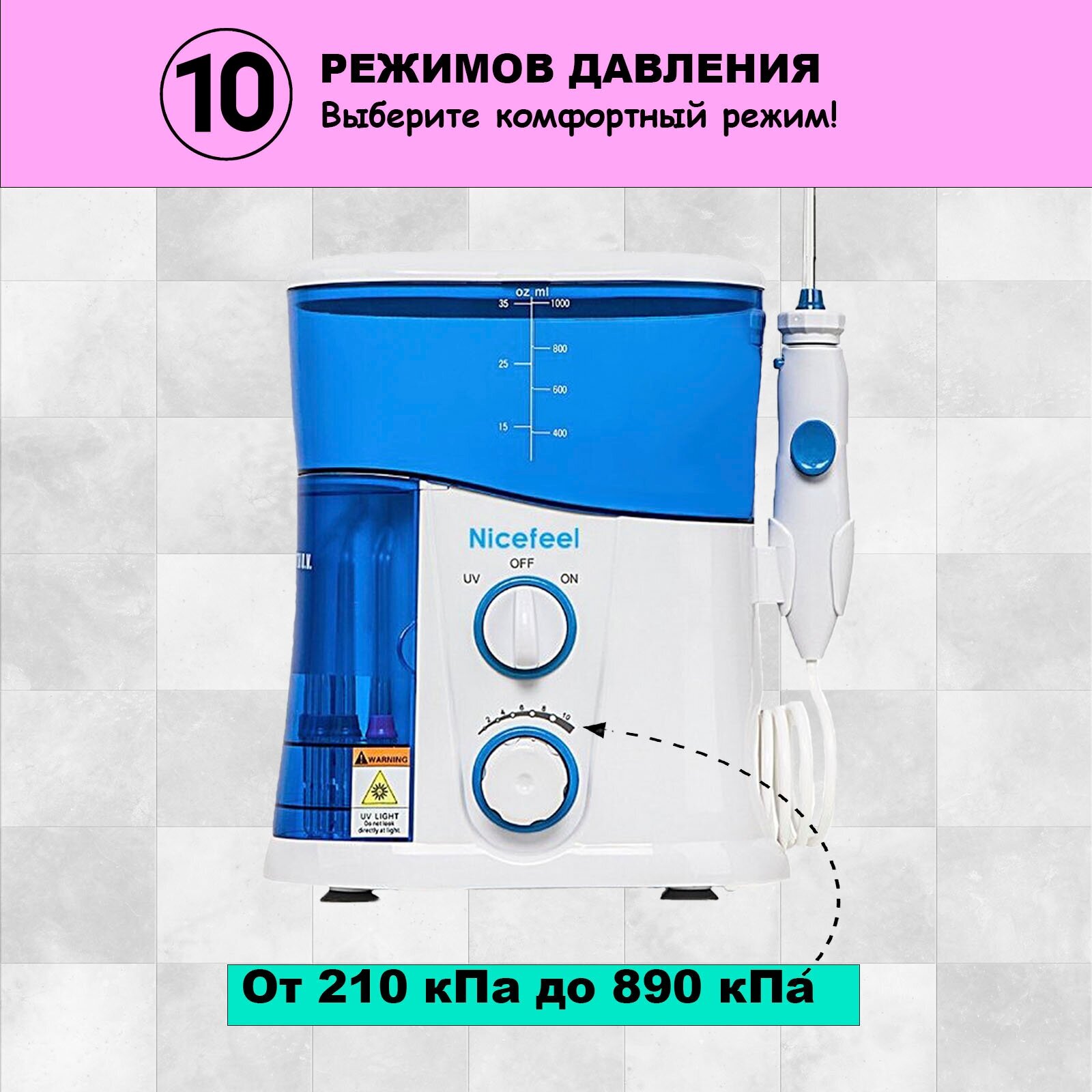 GoFlow Nicefeel FC 188UV Premium Ирригатор для полости рта с обеззараживающей UV лампой 9 насадок Бачок 1000мл 210-890кПа, Премиальная гарантия интересное: